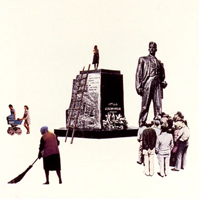 Majakovsky Steps Down from His Pedestal to Let the People Speak Color photocopy collage 17in x 17in, 1993